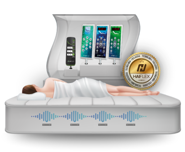O sistema de Vibromassagem Haiflex transforma o ato de deitar-se em um tratamento diário de relaxamento.